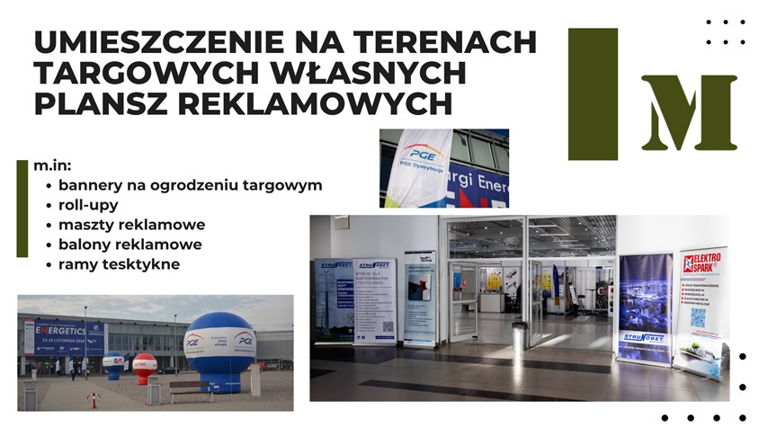 Ekspozycja reklamy w formie banneru, ram tekstylnych lub roll-upu na hali targowej, w holu lub innym uzgodnionym miejscu.